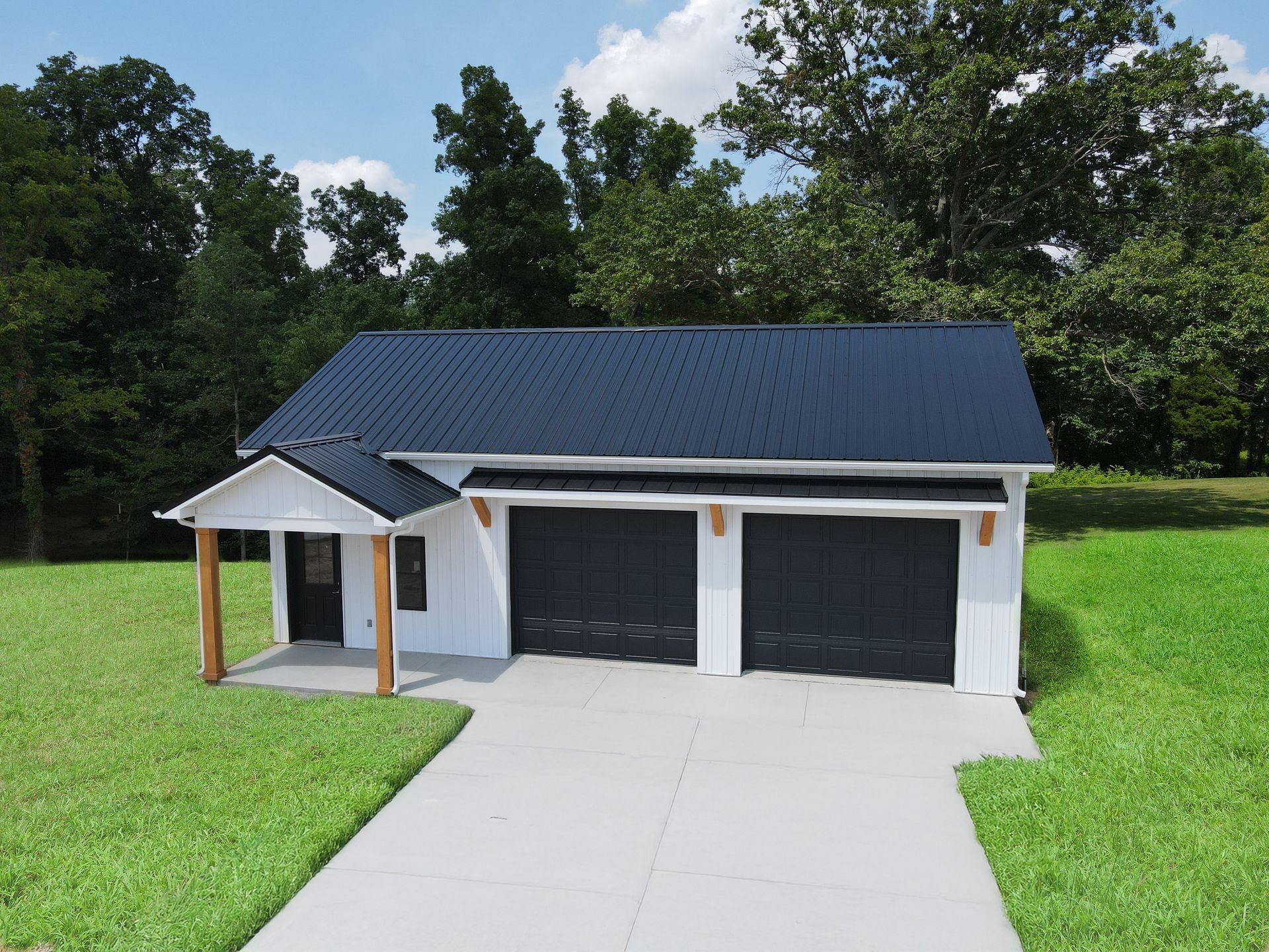 Black Ag Metal Roof, Doors, Windows, Eyebrow
